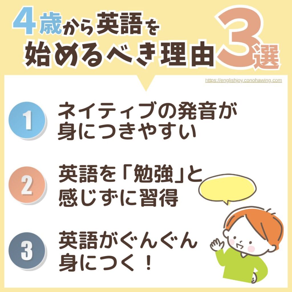 4歳は、英語を始めるのに最適なタイミング! その理由は以下の3つのメリットにあります。