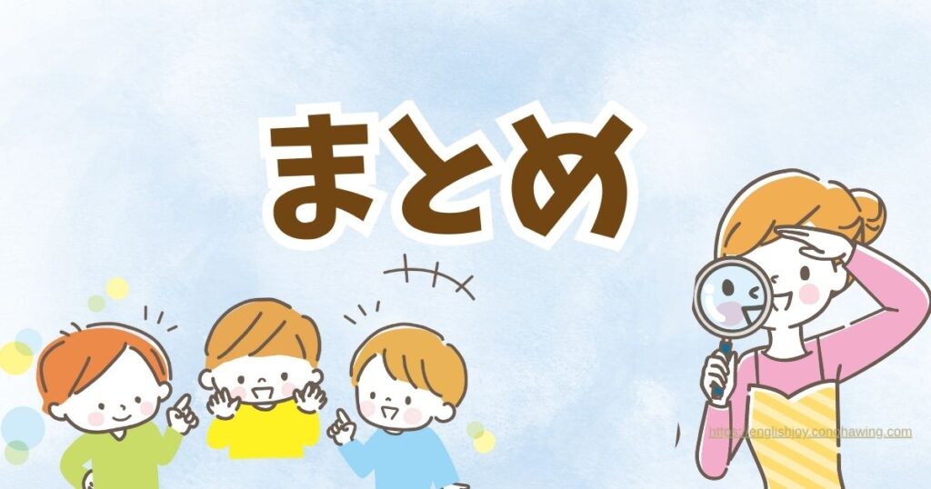 「うちの子、こんなに英語が言えるようになった!」と、成長が感じられる瞬間が増えるはずです。