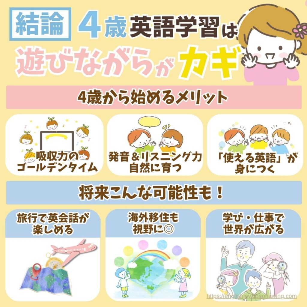 4歳から始める英語学習は、子どもの無限の可能性を引き出し、将来の夢や目標に向かう土台を築く大きなチャンスです。