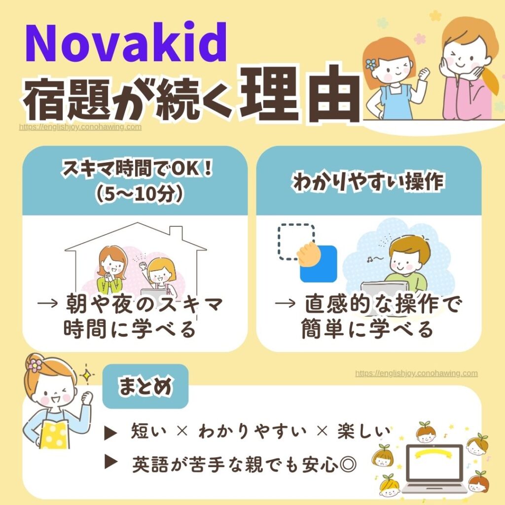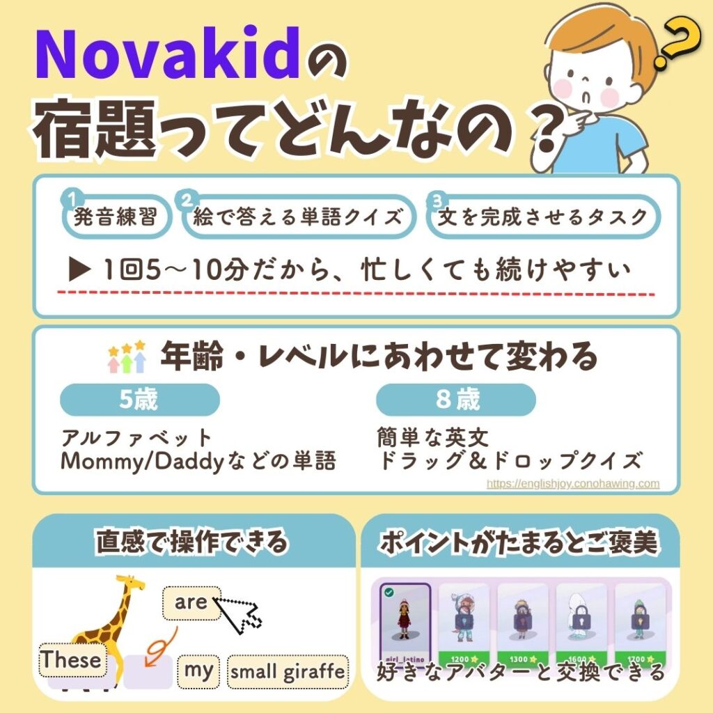 え、むしろそれがいいの!Novakidの宿題はゲームみたいな宿題だから、うちの子も遊び感覚で英語にハマってるよ〜