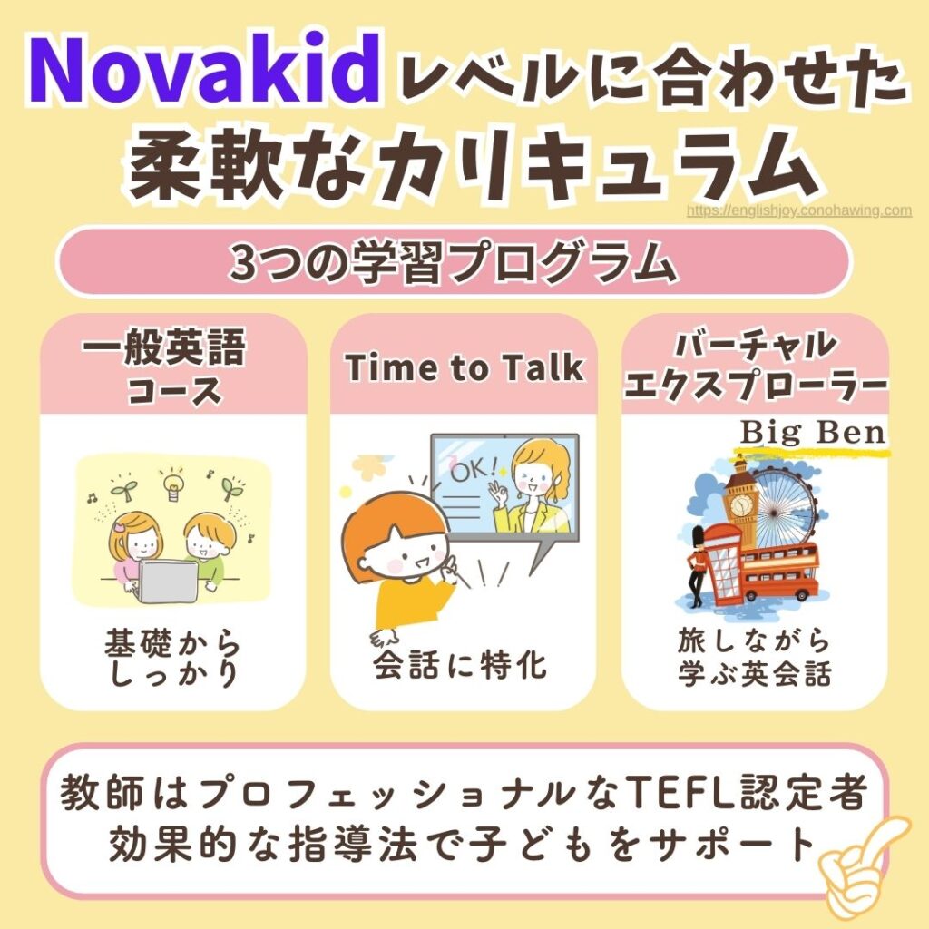 Novakidでは、次の3つの学習プログラムを用意しています。