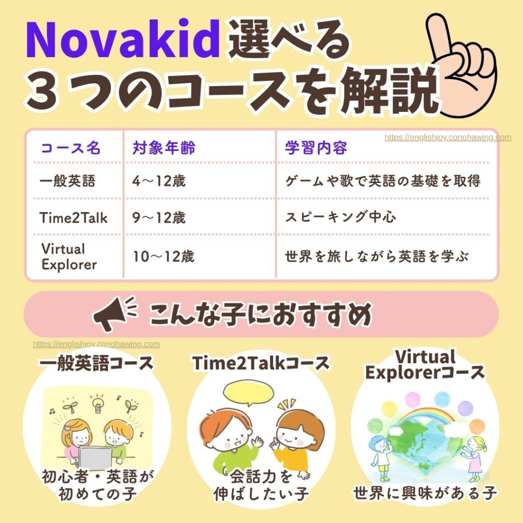 Novakidには、お子さんの英語レベルや目的に応じた3つのコースがあります。