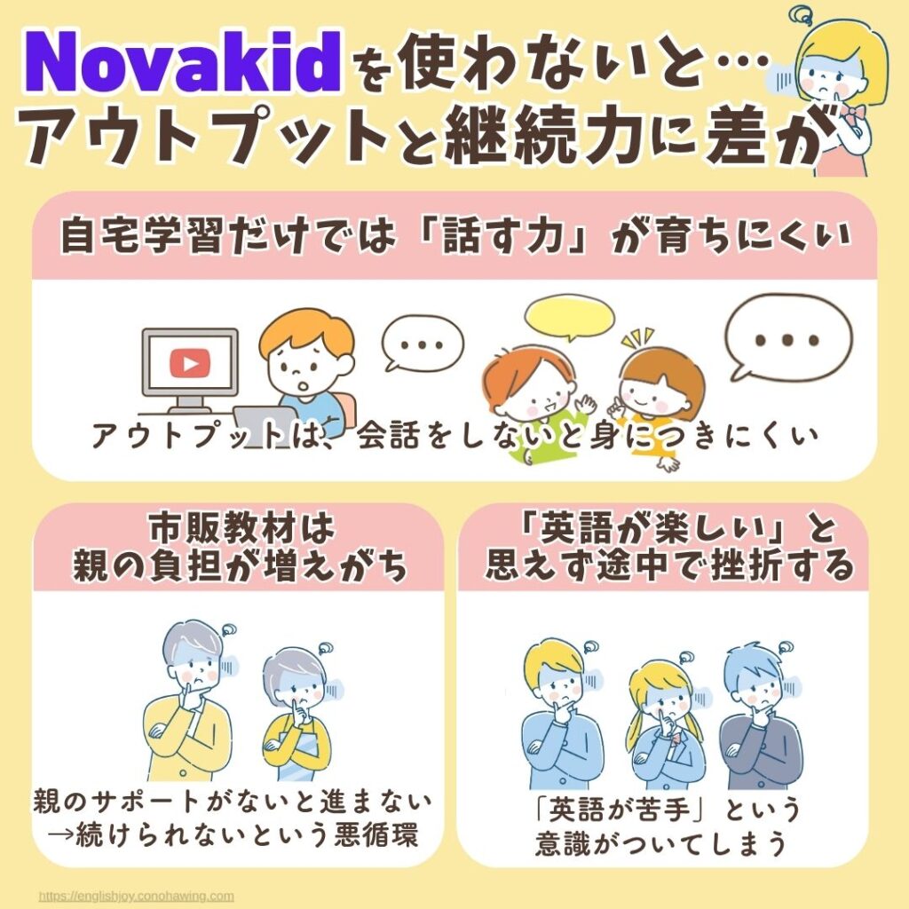 ここでは、Novakidを使わなかった場合に起こりがちな3つの落とし穴を紹介します。