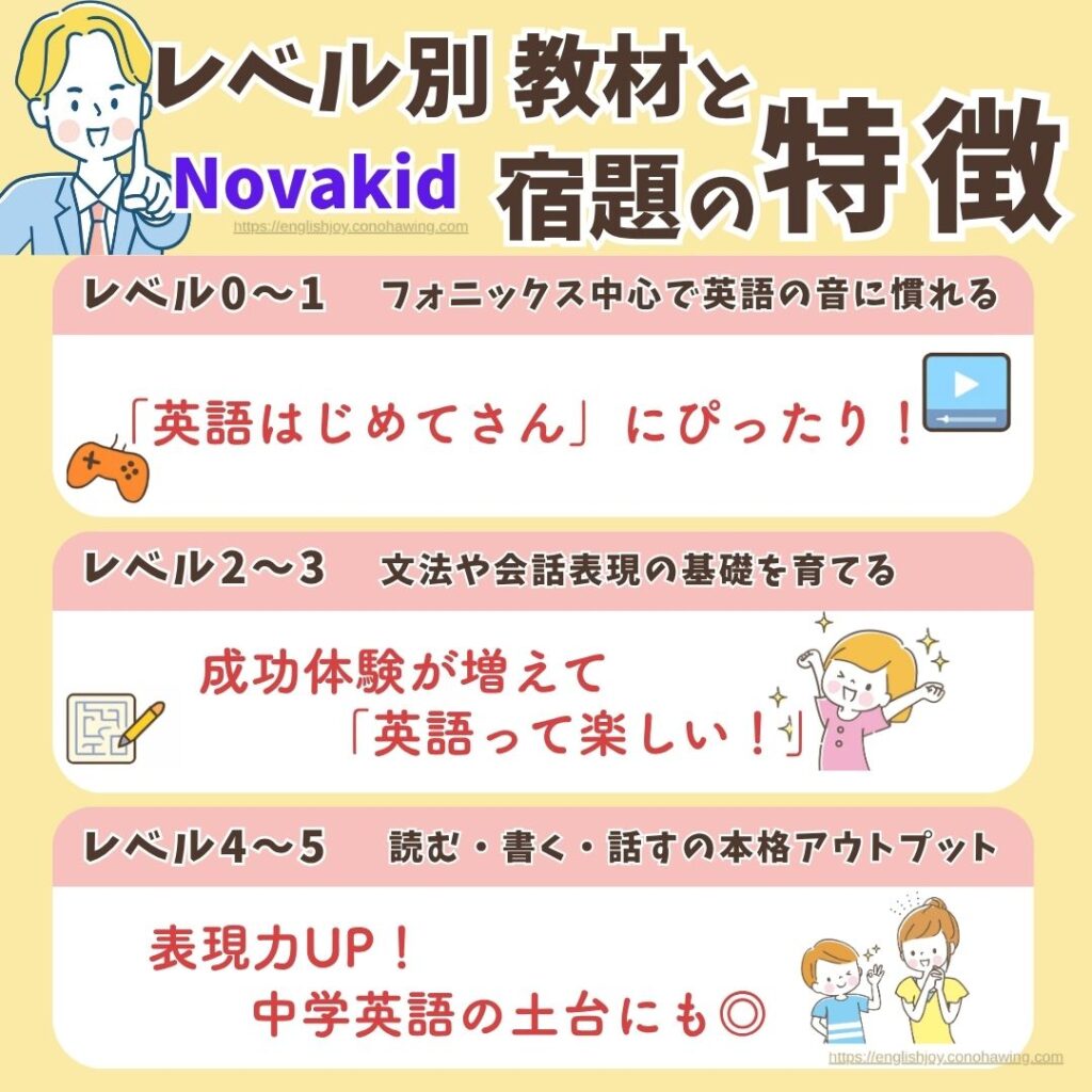 「Novakidってレベルがあるみたいだけど、実際どうなの?」