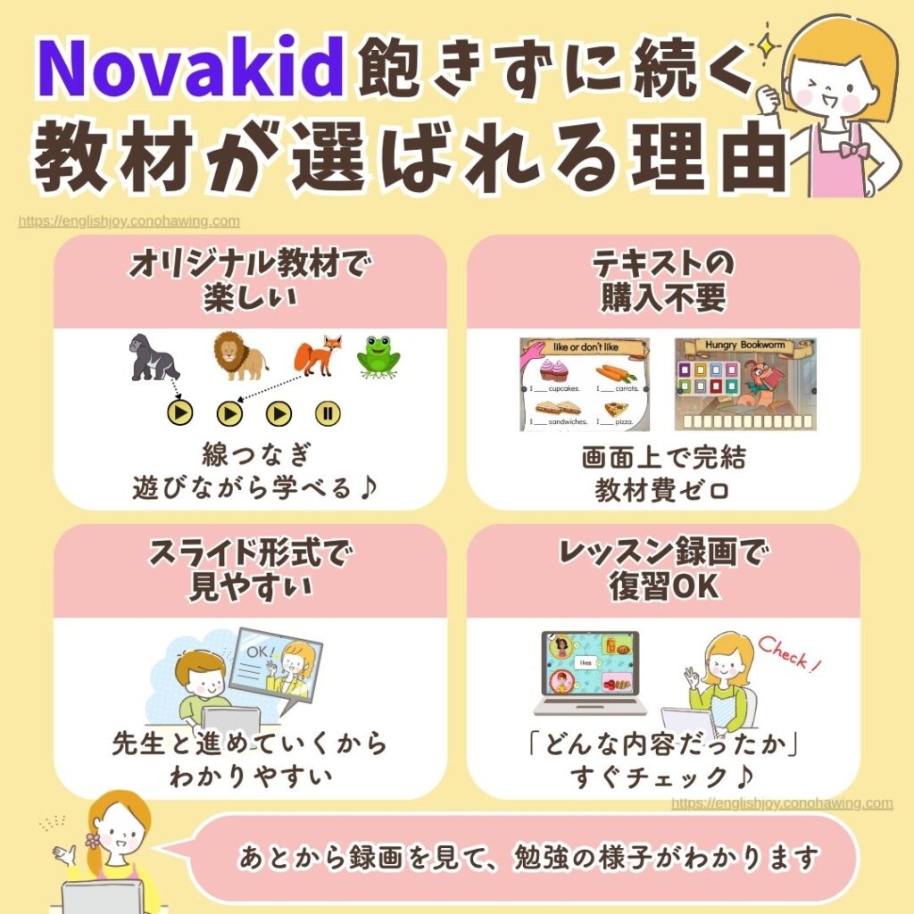 ここでは、Novakid教材の大きな特徴をご紹介します。