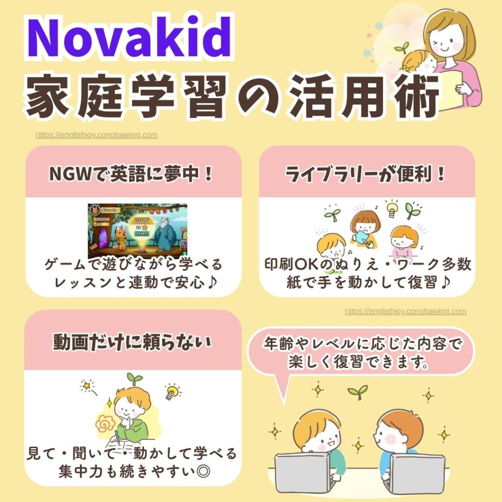 Novakidの教材は、レッスン中だけでなく、家庭での学習にも非常に活用しやすいです。
