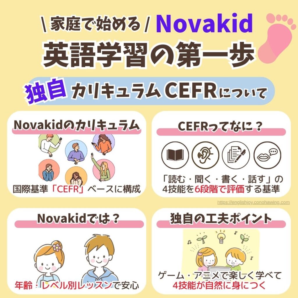 特にNovakidは、4~12歳の子供向けに設計されたオンライン英語スクールで、ヨーロッパ言語共通参照枠(CEFR)を基に独自のカリキュラムで構成。